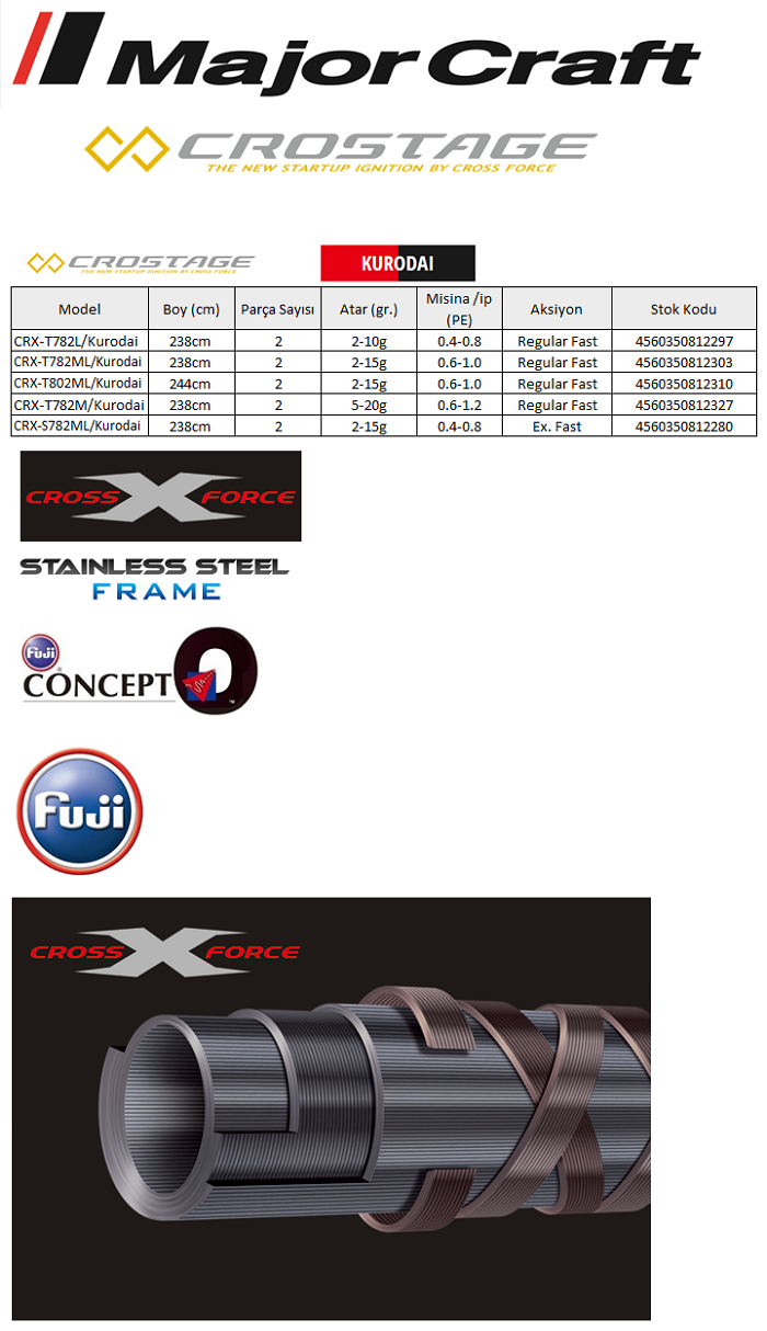 MC New Crostage CRX-S782ML/Kurodai Light Rock Light Spin Kamış 238cm 2-15g